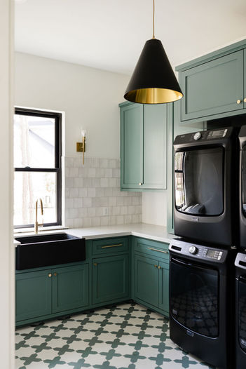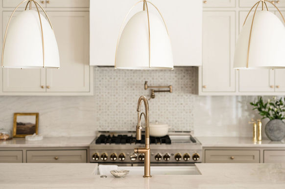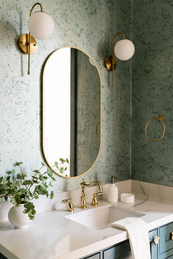 This was our first new build project. We designed the breakfast bar, pantry, playroom, office and bunk beds. We also partially furnished the home and assisted with all wallpaper, tile, countertop, paint and lighting selections.