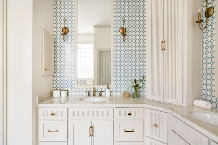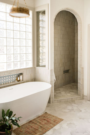 By reworking the layout of this Primary Bathroom we enhanced the functionality of the bathroom and closet. This project highlights the beautiful nature of zellige tile.